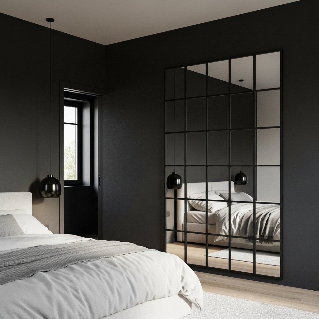 Mirrors are a clever trick to visually expand a small dark bedroom. A large wall mirror or mirrored closet doors reflect light and add depth. Choose frames that match your room’s style, such as black metal or dark wood for a cohesive look. Positioning a mirror opposite a window can also amplify natural light. Mirrors make a dark small bedroom feel larger and more open without compromising its cozy vibe.