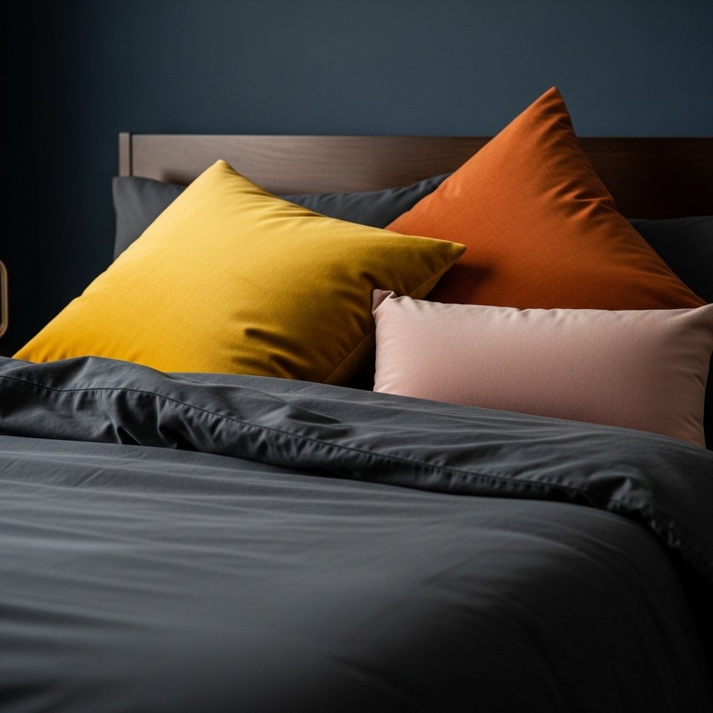 Dark bedding in shades of charcoal, deep blue, or forest green creates a calm and intimate feel. Adding small pops of color through pillows, throws, or cushions can brighten the space without overwhelming it. Warm colors like burnt orange, mustard, or blush pair beautifully with dark tones. This technique balances coziness with visual interest. Dark bedding is especially effective in small rooms as it draws the eye inward, creating a snug retreat.