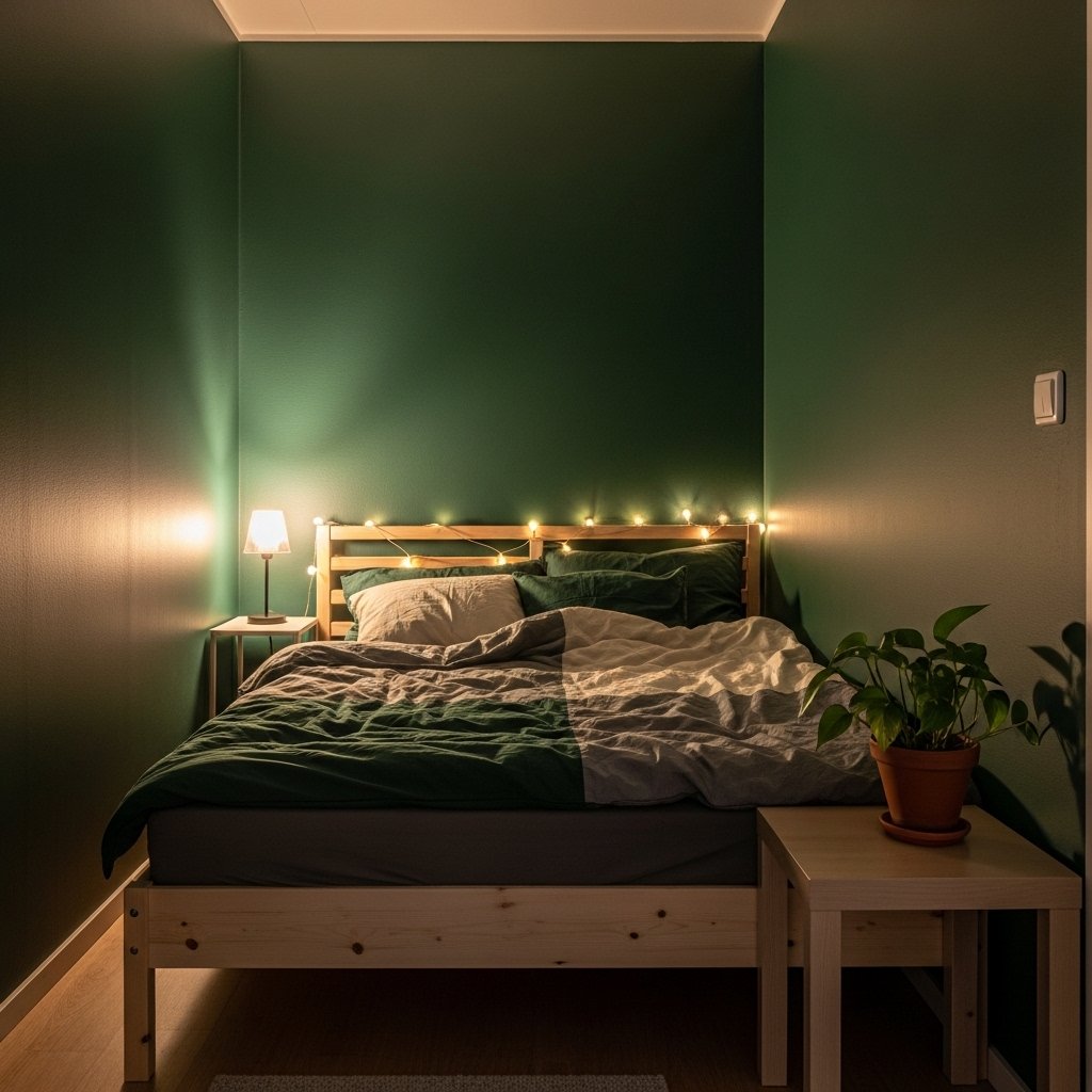 Cozy dark small bedroom ideas focus on using deep colors like charcoal, navy, dark brown, or forest green to create a warm and relaxing atmosphere. Instead of making the room feel smaller, dark shades can actually add depth and comfort when balanced with soft lighting and light-colored bedding. The key is to mix dark walls with warm textures like blankets, cushions, and rugs to keep the space inviting and stylish.