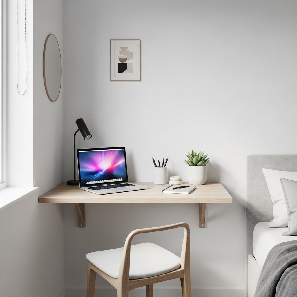 For those who work or study from home, a minimalist desk setup is key in small bedrooms. A sleek desk with drawers keeps essentials organized, and pairing it with a compact chair maintains free space. Floating desks or wall-mounted tables can be excellent solutions when floor space is limited. Keeping the workspace tidy with cable management and minimal decor ensures the room feels calm and uncluttered. A functional yet aesthetic workspace enhances productivity while preserving bedroom comfort.