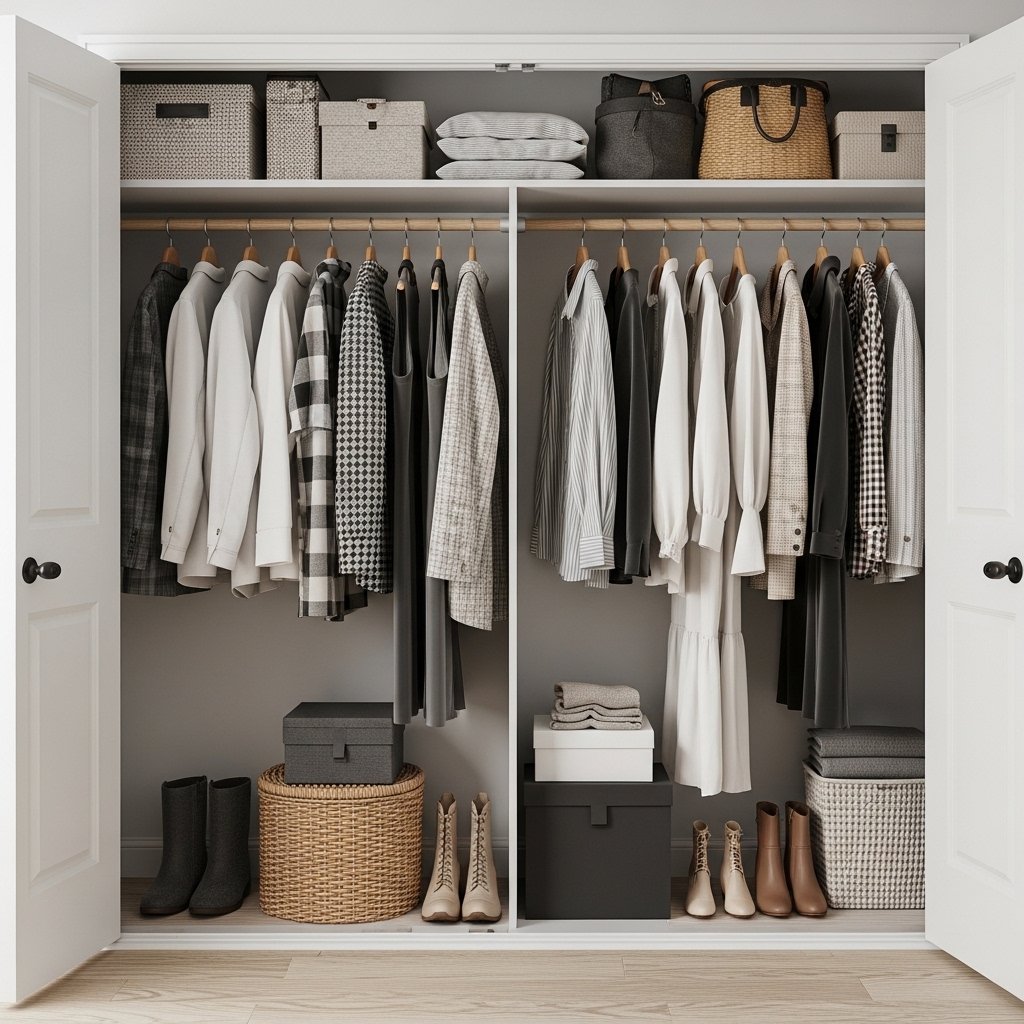 Organized storage is crucial for small bedrooms, and a compact wardrobe can maximize space efficiently. Use drawer organizers, hanging shelves, and storage bins to keep clothing tidy. Sliding doors or open wardrobe designs help save room while keeping essentials accessible. A well-organized closet prevents clutter from spilling into the rest of the bedroom. Clever storage solutions contribute significantly to a clean, cozy aesthetic.