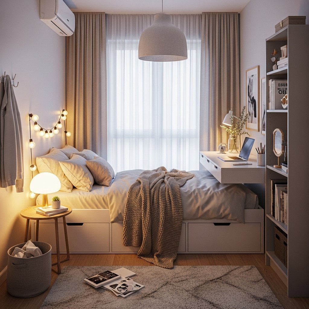 Cozy small aesthetic apartment bedrooms are achievable with thoughtful design, strategic furniture choices, and layered textures. Using a neutral palette, soft lighting, and clever storage solutions ensures the room feels open yet inviting. Personal touches, indoor plants, and statement decor pieces bring warmth and personality to compact spaces. With these twelve ideas, even the smallest bedroom can transform into a stylish, comfortable sanctuary. Prioritizing both function and aesthetics allows your bedroom to be a place of relaxation, inspiration, and cozy comfort.