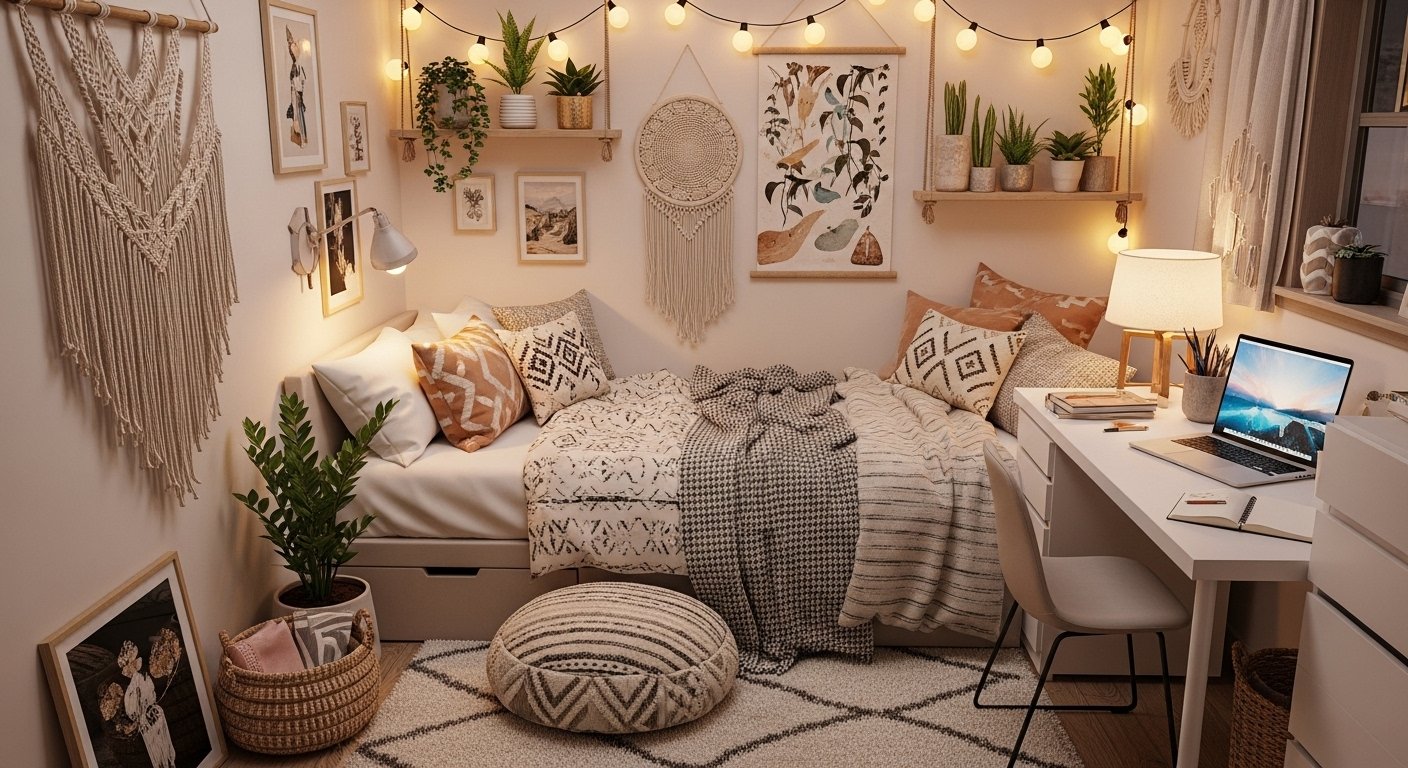 You can decorate a small apartment bedroom beautifully by choosing light colors, multifunctional furniture, and soft lighting. Wall art, fairy lights, and small indoor plants can enhance the aesthetic look without taking up too much space. Keeping the room organized and clutter-free is also important to maintain a clean and stylish appearance.