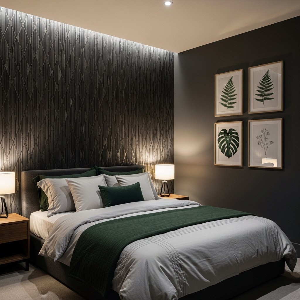 A statement headboard can become the focal point of a cozy dark grey bedroom. Upholstered or tufted headboards in lighter colors or rich textures like velvet add elegance. Wooden or metal frames with intricate designs also provide visual interest. This element creates a sense of luxury while drawing attention away from limited wall space. Pair it with neutral bedding to maintain a balanced and inviting atmosphere.