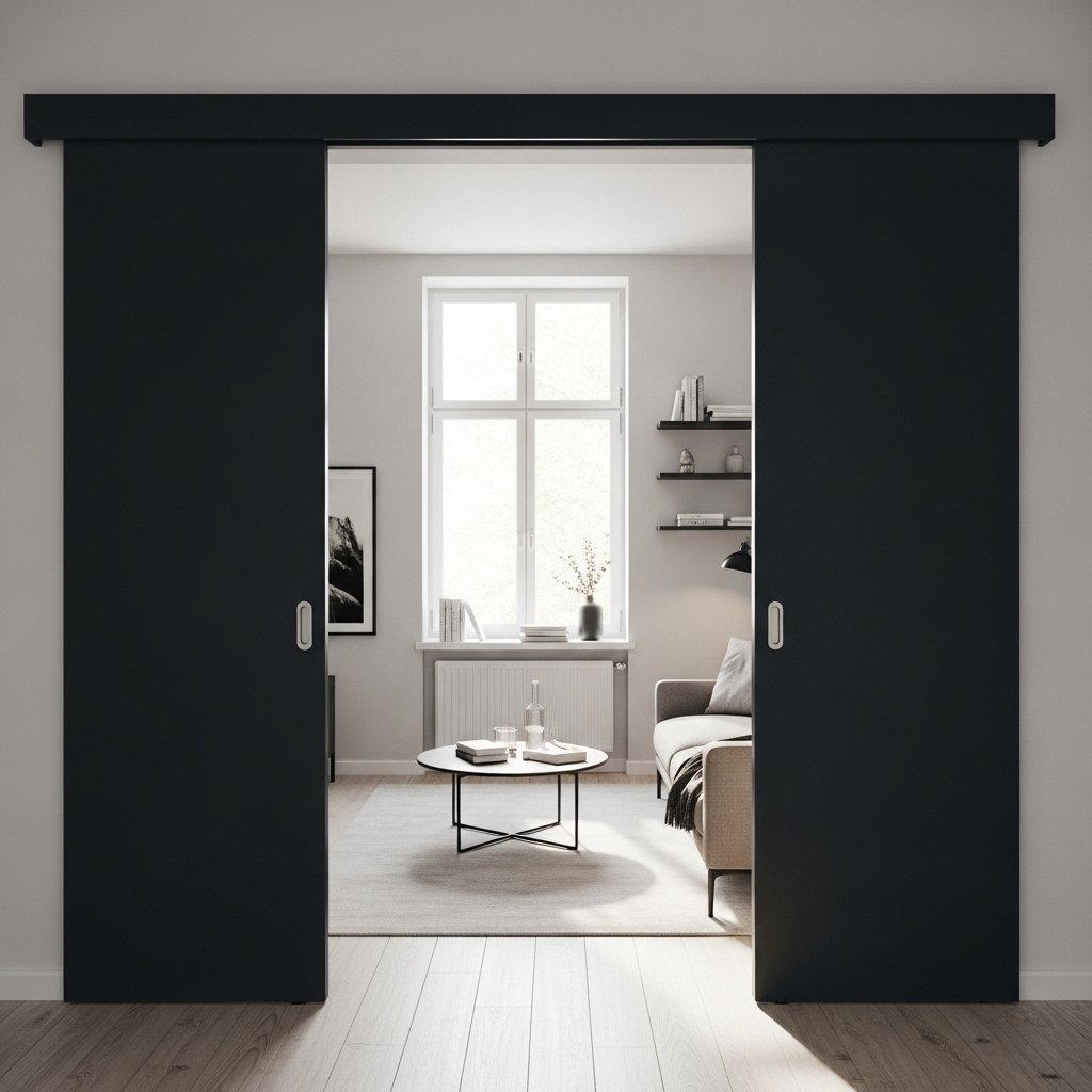 Dark sliding doors are both functional and stylish, especially in modern compact homes. They save space by eliminating the need for door swing clearance. The dark finish adds contrast and modern appeal to any room. These doors are commonly used in bedrooms, closets, and partition areas. This dark doors interior idea is perfect for maximizing space efficiently.