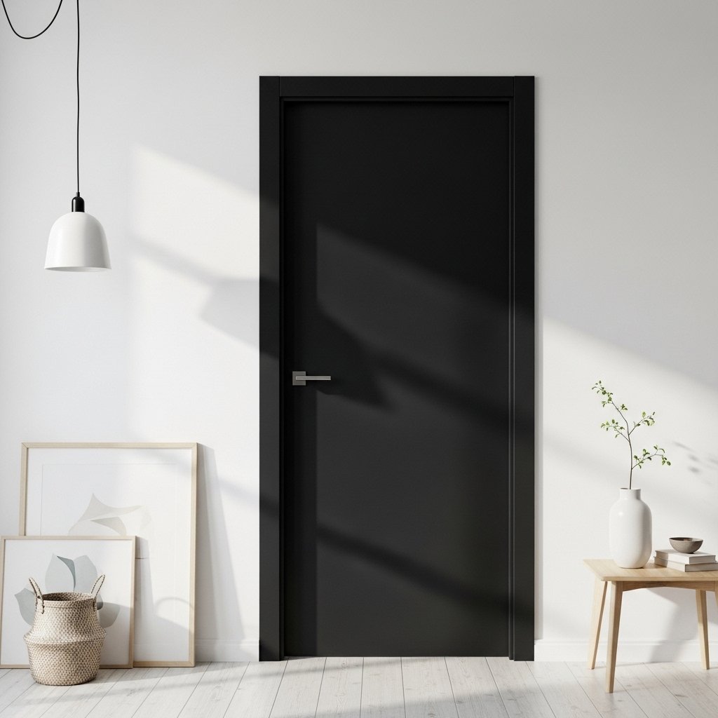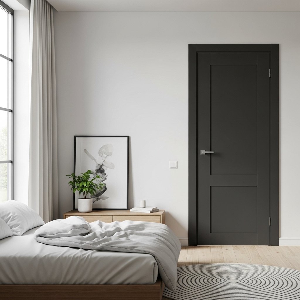 Matte black doors are a top choice in dark doors interior design because they create a clean and modern appearance. Their non-reflective finish adds subtle elegance without overwhelming the space. These doors work especially well in minimalist homes where simplicity is key. When paired with white or neutral walls, they create a striking contrast that feels both modern and timeless. This style is perfect for living rooms, hallways, and bedrooms.