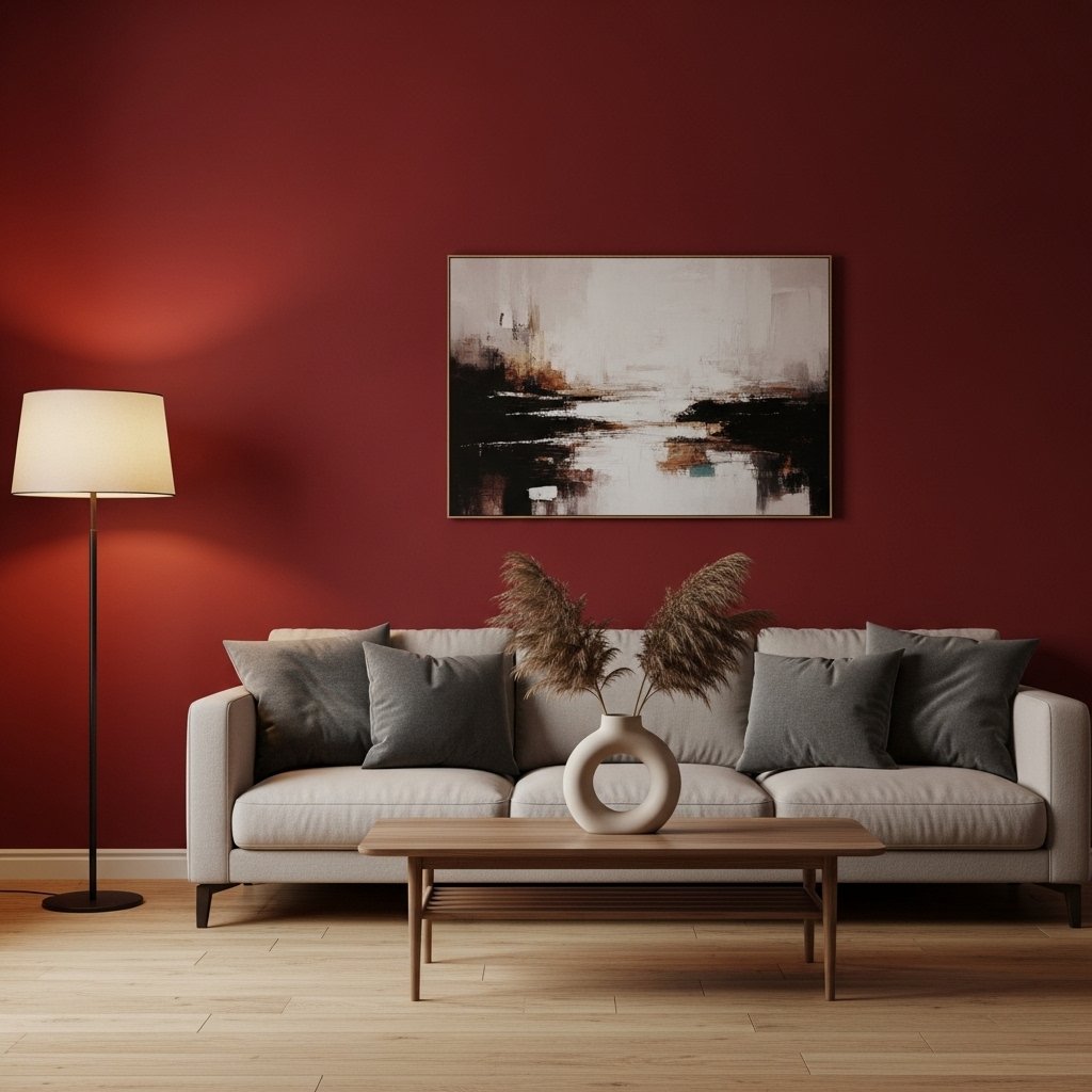 A dark red accent wall is one of the easiest ways to introduce this rich color into your interior design. It instantly becomes the focal point of the room without requiring a full redesign. This works especially well in living rooms and bedrooms where you want to create depth and warmth. Pairing it with neutral colors like beige, cream, or gray balances the intensity. This idea is perfect for those who want a bold yet controlled transformation.