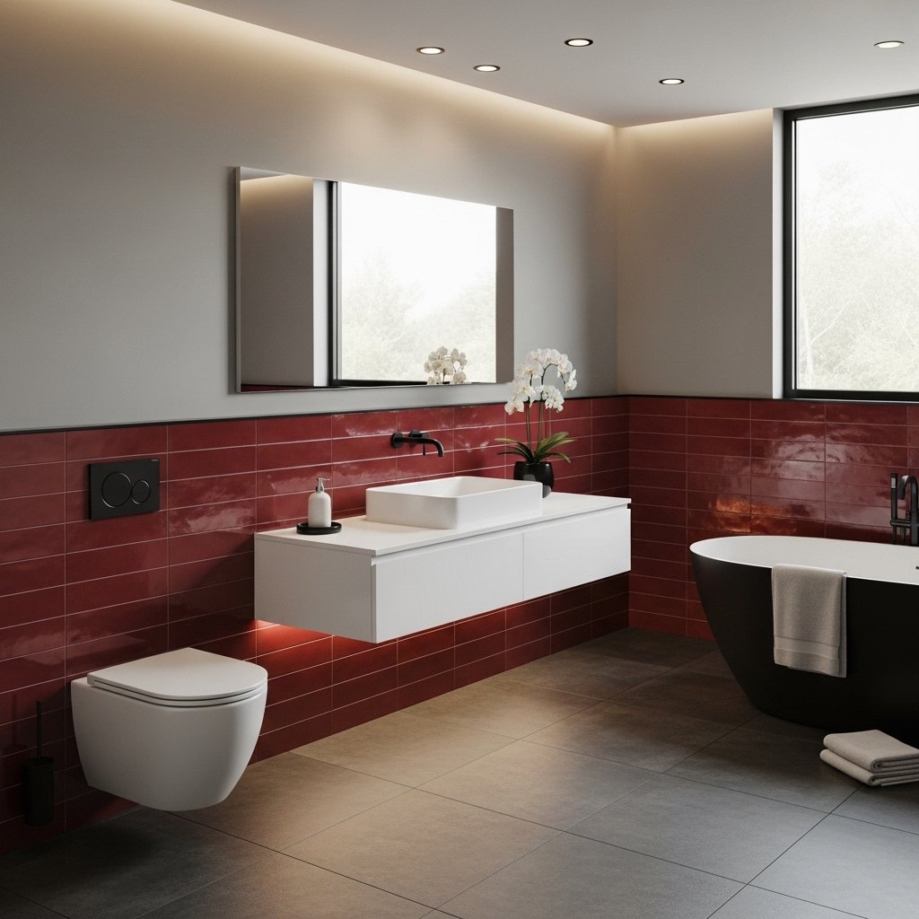 11. Dark Red Bathroom Accent Design