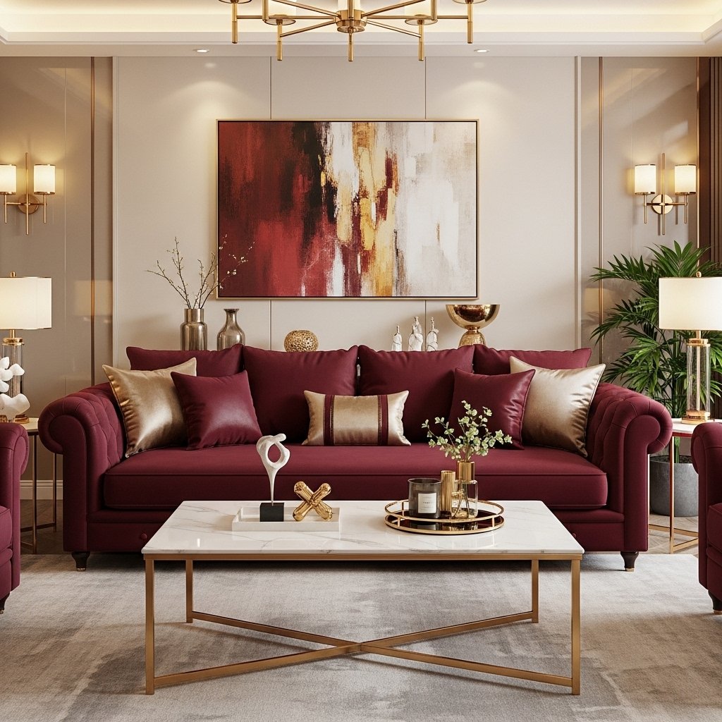Dark red pairs well with neutral colors like white, beige, gray, and black. It also looks great with gold or wooden tones for a more elegant style. These combinations help balance the strong red color and make the room look more modern and attractive.