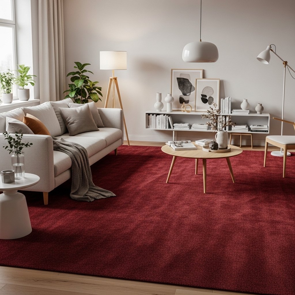 7. Dark Red Carpet and Rug Styling