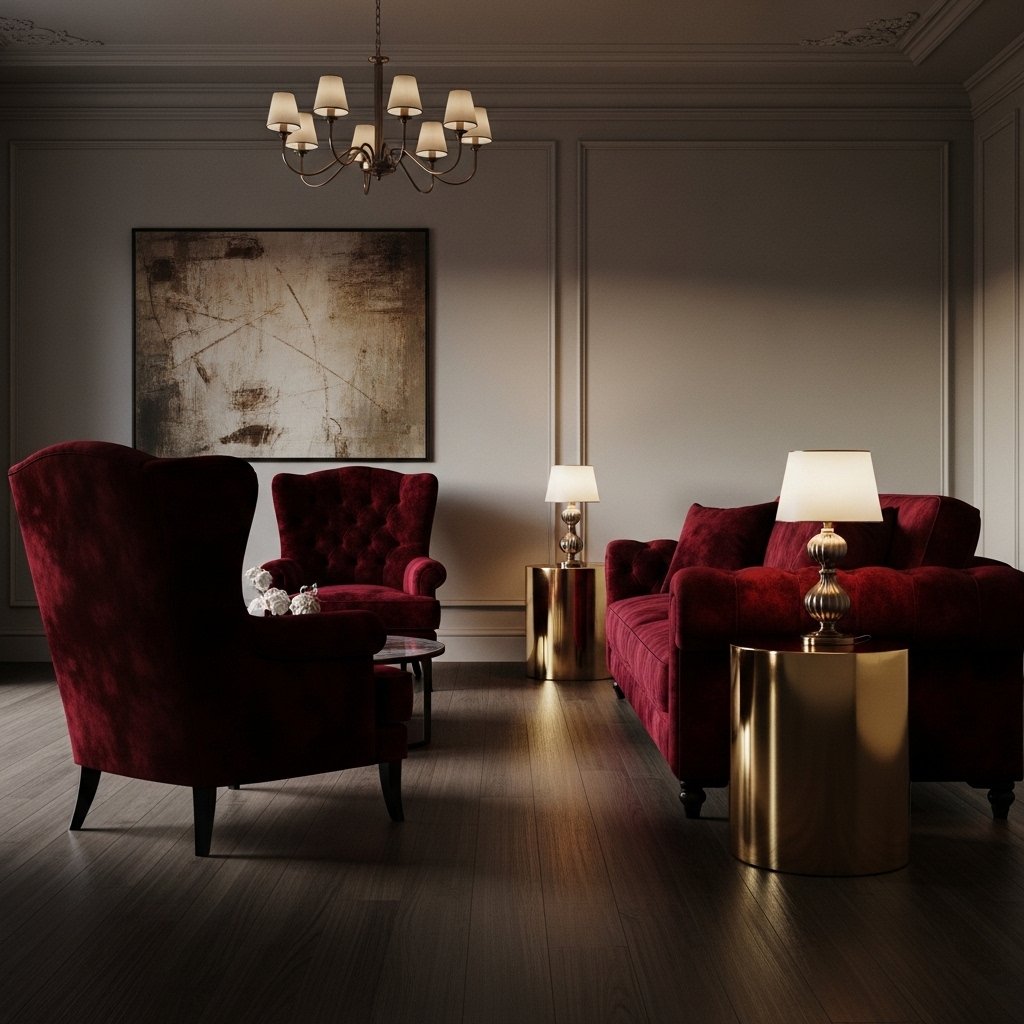 Velvet furniture in dark red instantly elevates the luxury factor of any interior space. Sofas, chairs, or ottomans in this material feel rich and visually striking. The texture of velvet enhances the depth of the red tone, making it more vibrant and elegant. This style works especially well in formal living rooms or lounge areas. It is a timeless choice for high-end interior design.