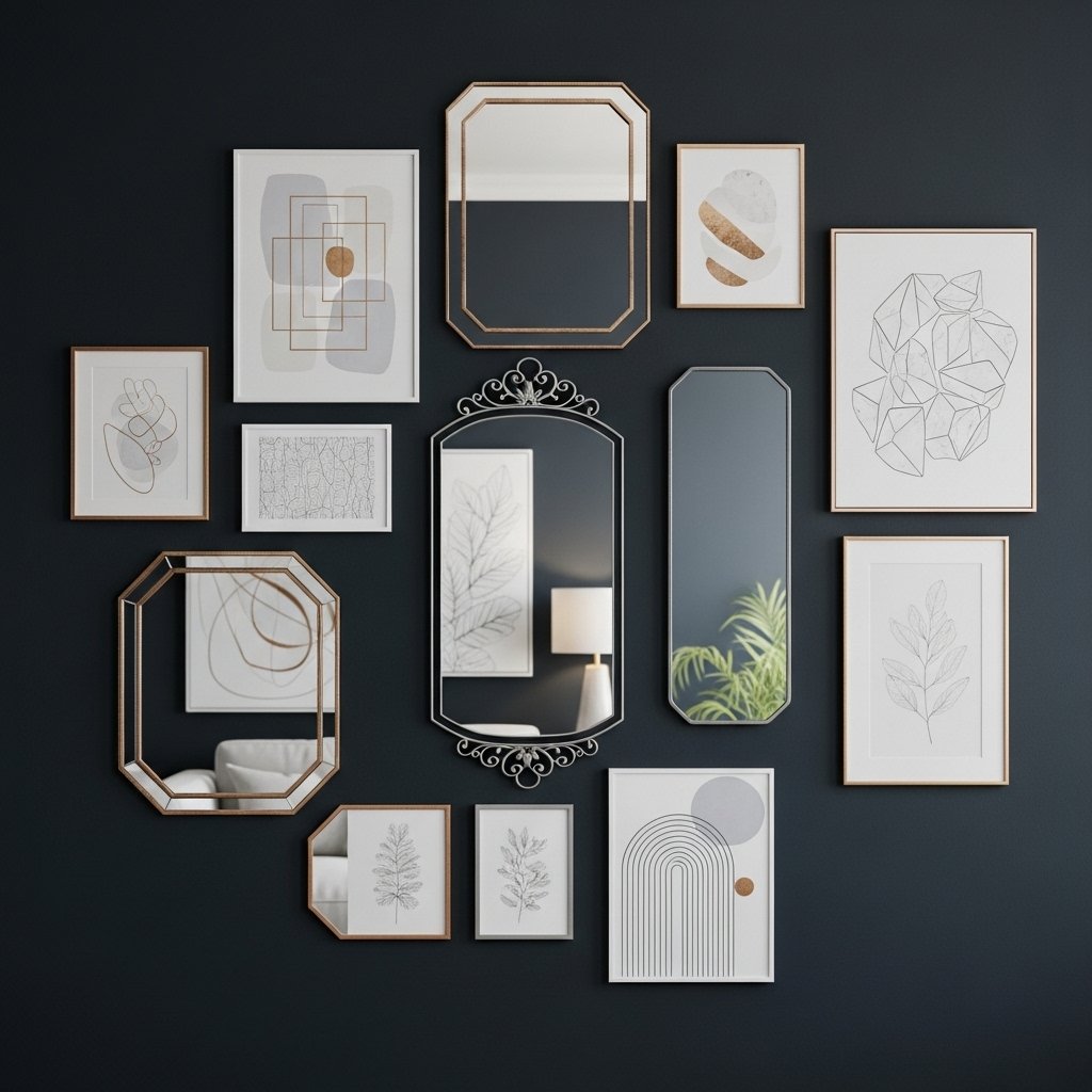 Artwork and mirrors break up large dark walls and add visual interest. Framed prints, abstract paintings, or photography in lighter or metallic tones pop against dark backgrounds. Mirrors reflect light, make the space feel larger, and add depth. Even a small gallery wall can add personality without overcrowding the room. This combination ensures the dark room feels curated, elegant, and inviting.