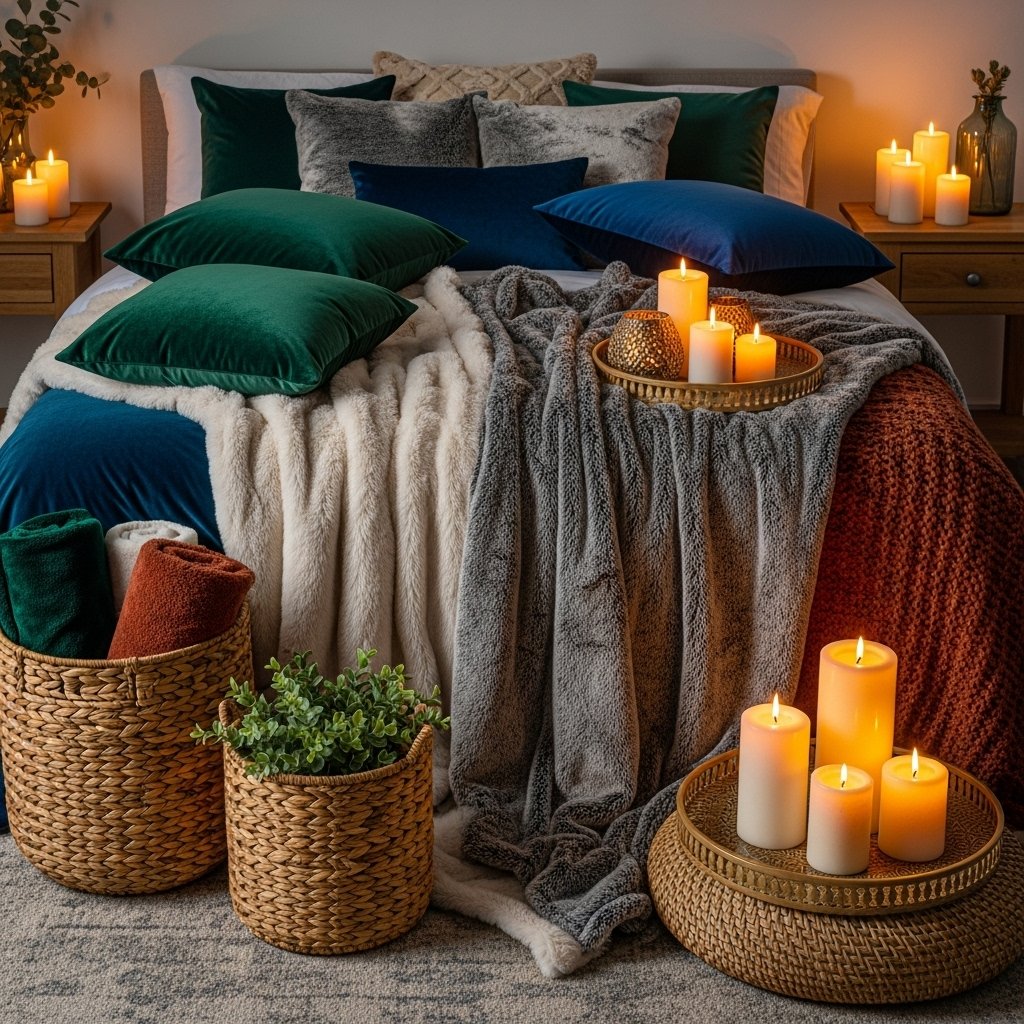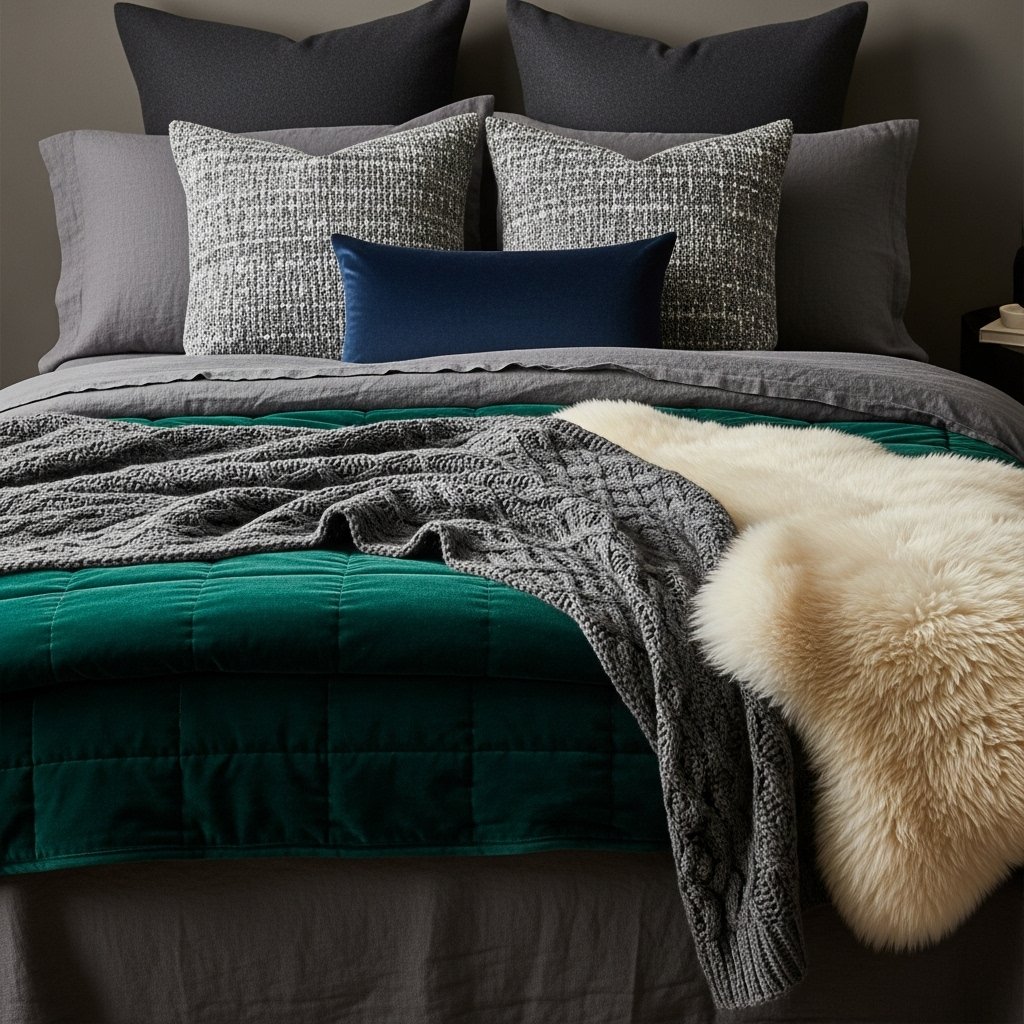 Bedding is the centerpiece of a dark bedroom, and layered textures make it feel inviting. Use soft duvets, plush blankets, and multiple pillows in complementary colors. Fabrics like velvet, knit, or flannel add warmth and depth. Mixing textures enhances the comfort and tactile appeal of the room. A cozy bed is essential for making a dark bedroom feel like a sanctuary.