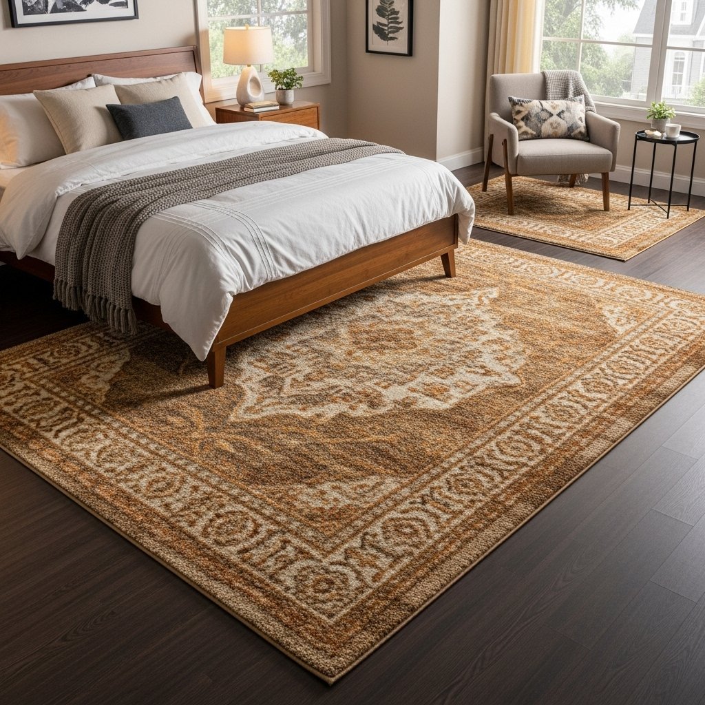 Area rugs soften the space and prevent dark floors from feeling cold or uninviting. Choose rugs in warm tones or subtle patterns to complement the dark décor. A soft, plush rug under the bed or seating area adds comfort underfoot. Rugs also help define areas in larger rooms while balancing visual heaviness. Layering rugs or using neutral tones enhances coziness in a dark room.