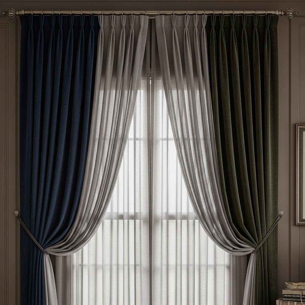 Heavy curtains in warm tones can create intimacy, but pairing them with sheer layers prevents darkness from feeling oppressive. Linen, velvet, or blackout curtains in deep shades add elegance and warmth. Sheer layers allow natural light to filter softly into the room. Layered window treatments give flexibility and enhance the cozy feel of a dark bedroom. They also contribute to privacy and a sense of enclosure.