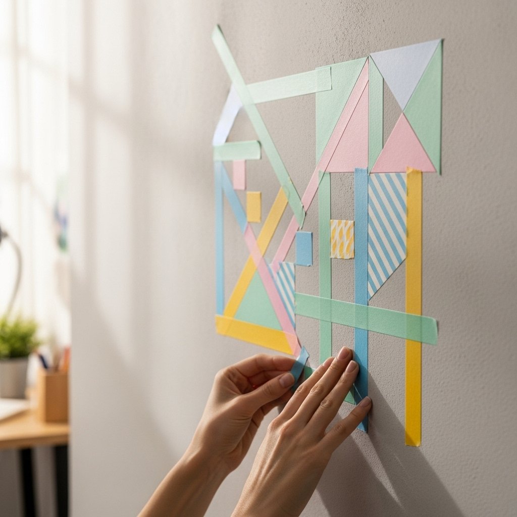 Washi tape is an inexpensive and versatile tool for creating aesthetic wall designs. Use it to make geometric shapes, stripes, patterns, or even custom quotes directly on your walls. The best part is it’s removable, so you can change designs without damaging the paint. Washi tape art works well in bedrooms, study areas, or dorm rooms. Combine multiple colors or textures to make the wall pop while keeping the look chic and playful.