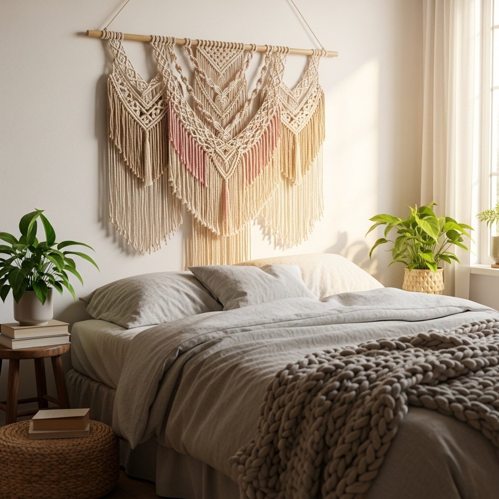 Macrame wall hangings bring texture, warmth, and boho vibes to any room. Using simple knots and cords, you can create patterns ranging from small wall accents to full-size hangings. They look beautiful above beds, sofas, or in reading nooks. Neutral shades like beige, cream, or soft pastels maintain a calm aesthetic, while colorful cords add a modern twist. This DIY project is great for beginners and also doubles as a creative, relaxing hobby.
