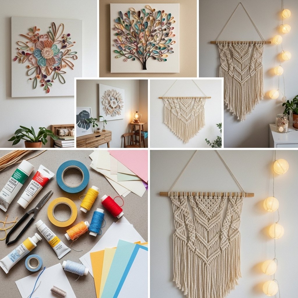 DIY wall art improves the look of an aesthetic room by adding visual balance and artistic detail. It helps fill empty wall spaces while matching the room’s theme and color palette. Handmade wall art also gives a cozy and personal feel, making the room look thoughtfully designed and more inviting.
