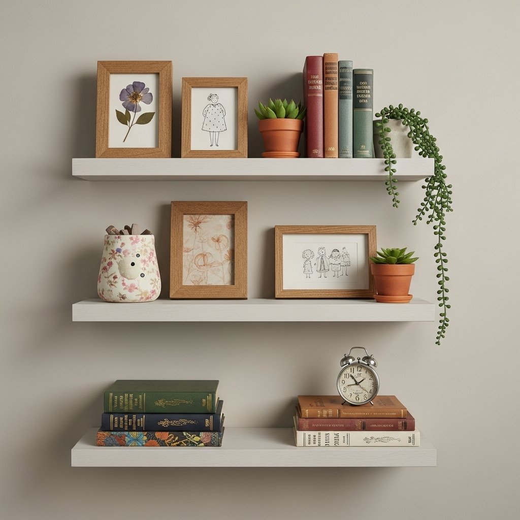 6. Aesthetic Shelf Decor with Handmade Items