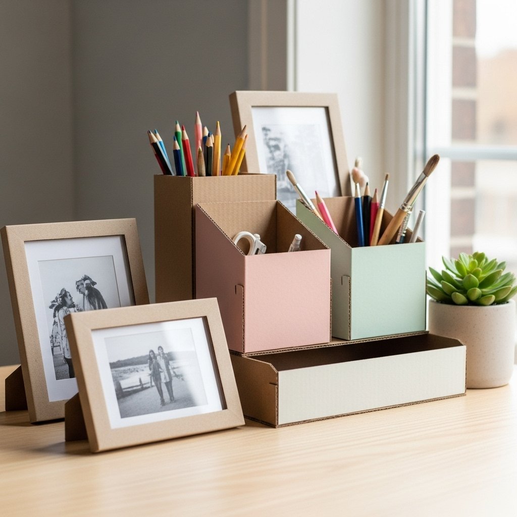 Cardboard DIY room decor ideas are affordable and creative for aesthetic styling. You can make photo frames, organizers, or wall art using recycled cardboard. Painting them in beige, white, or pastel shades gives a clean aesthetic look. This DIY craft is eco-friendly and perfect for budget decor. Cardboard decor works well for students, dorm rooms, and DIY lovers.