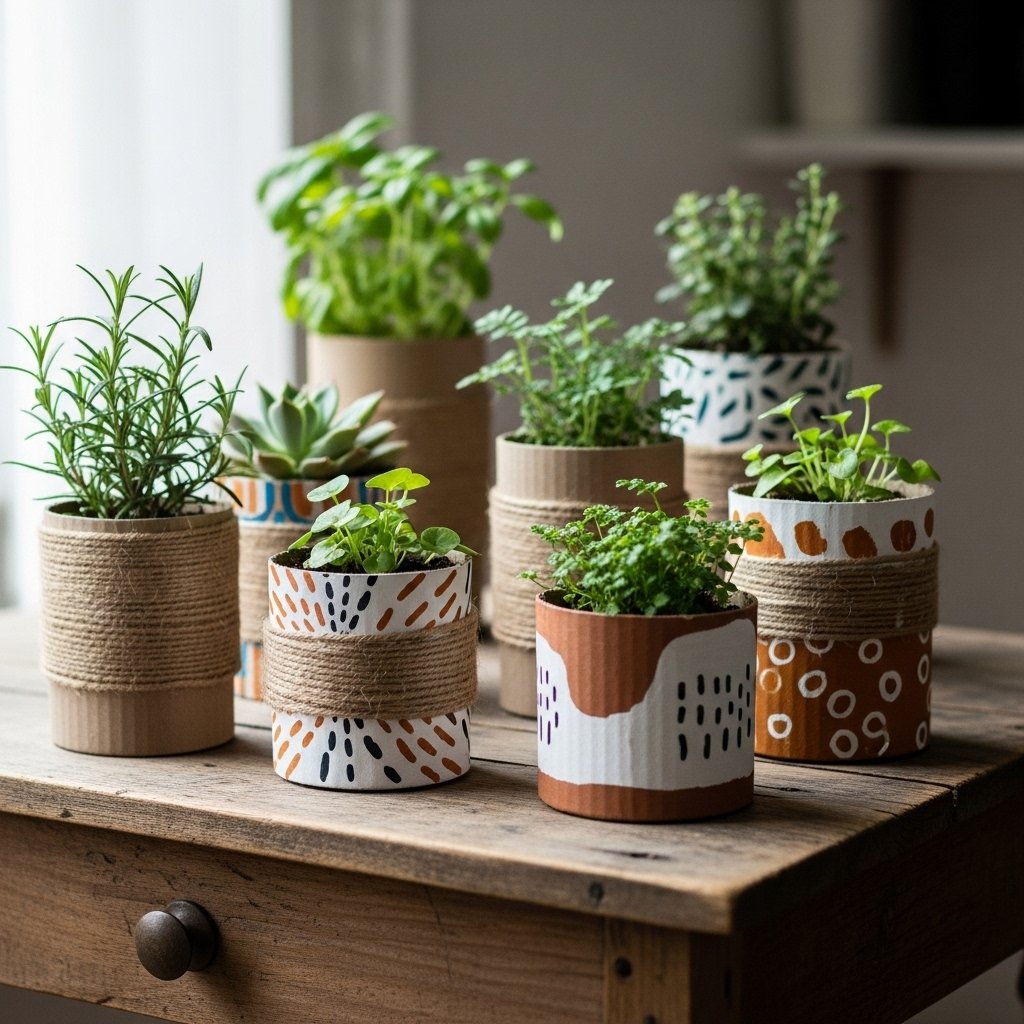 Create aesthetic plant holders using cardboard boxes or tubes for small indoor plants. Paint them, cover with fabric, or wrap in jute for a rustic or boho look. Cardboard plant holders can sit on shelves, tables, or windowsills to add greenery to your room. Make sure to line them with plastic to prevent water damage. This DIY idea is budget-friendly, eco-conscious, and brings life to your room décor.
