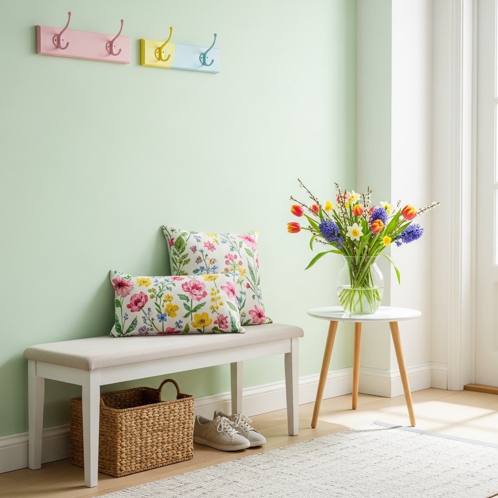 Refreshing your entryway for spring sets a positive tone the moment you step inside. Add a small bench cushion in a floral print or swap out winter rugs for lighter woven styles. A simple DIY wall hook rack painted in soft pastel colors can brighten the space instantly. Including a vase of fresh flowers completes the welcoming look. Even small changes in the entryway can make a big seasonal impact.