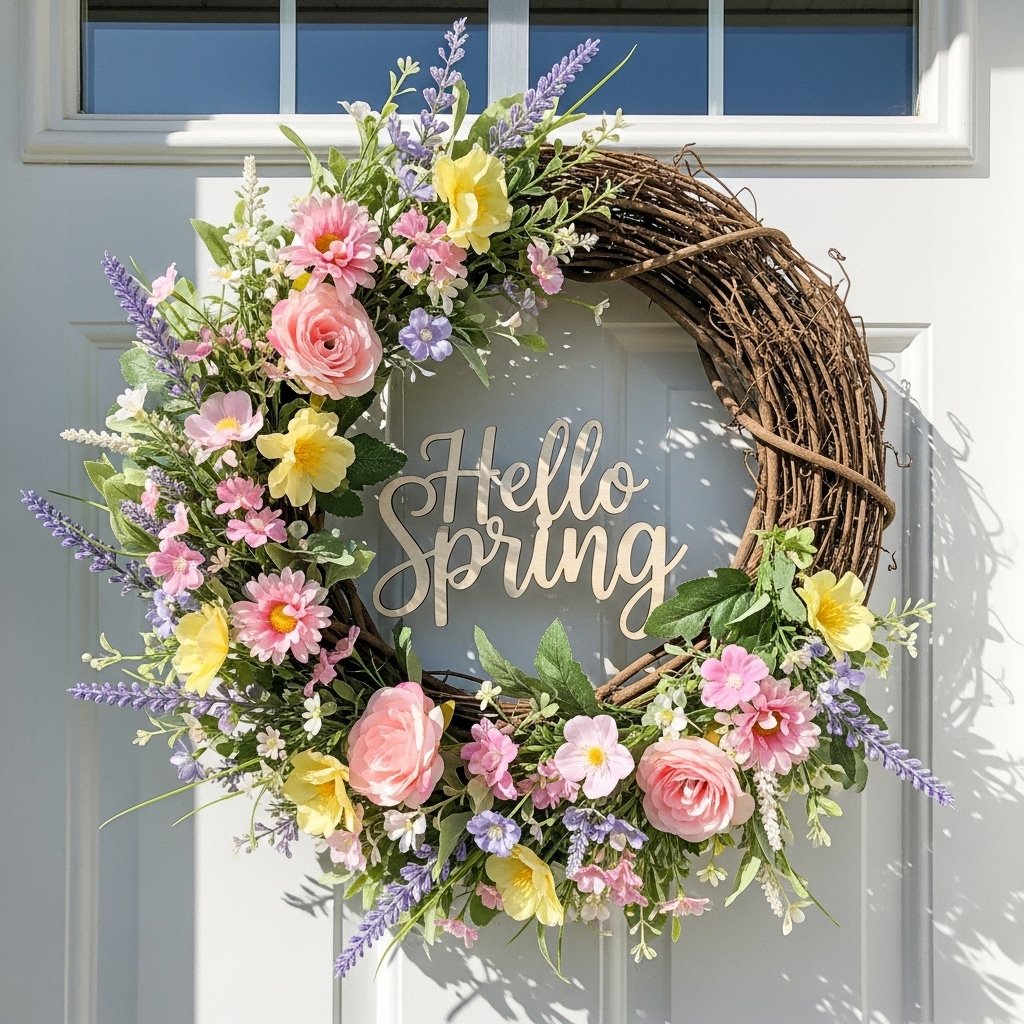 A DIY spring floral wreath is one of the easiest ways to welcome the season into your home. Using faux flowers, greenery, and a simple grapevine base, you can create a beautiful front door statement piece. Soft pastel blooms like blush pink, lavender, and pale yellow give your wreath a light and cheerful feel. Adding ribbon or a wooden “Hello Spring” sign makes it even more inviting. This project instantly boosts curb appeal and sets the tone for your entire home.