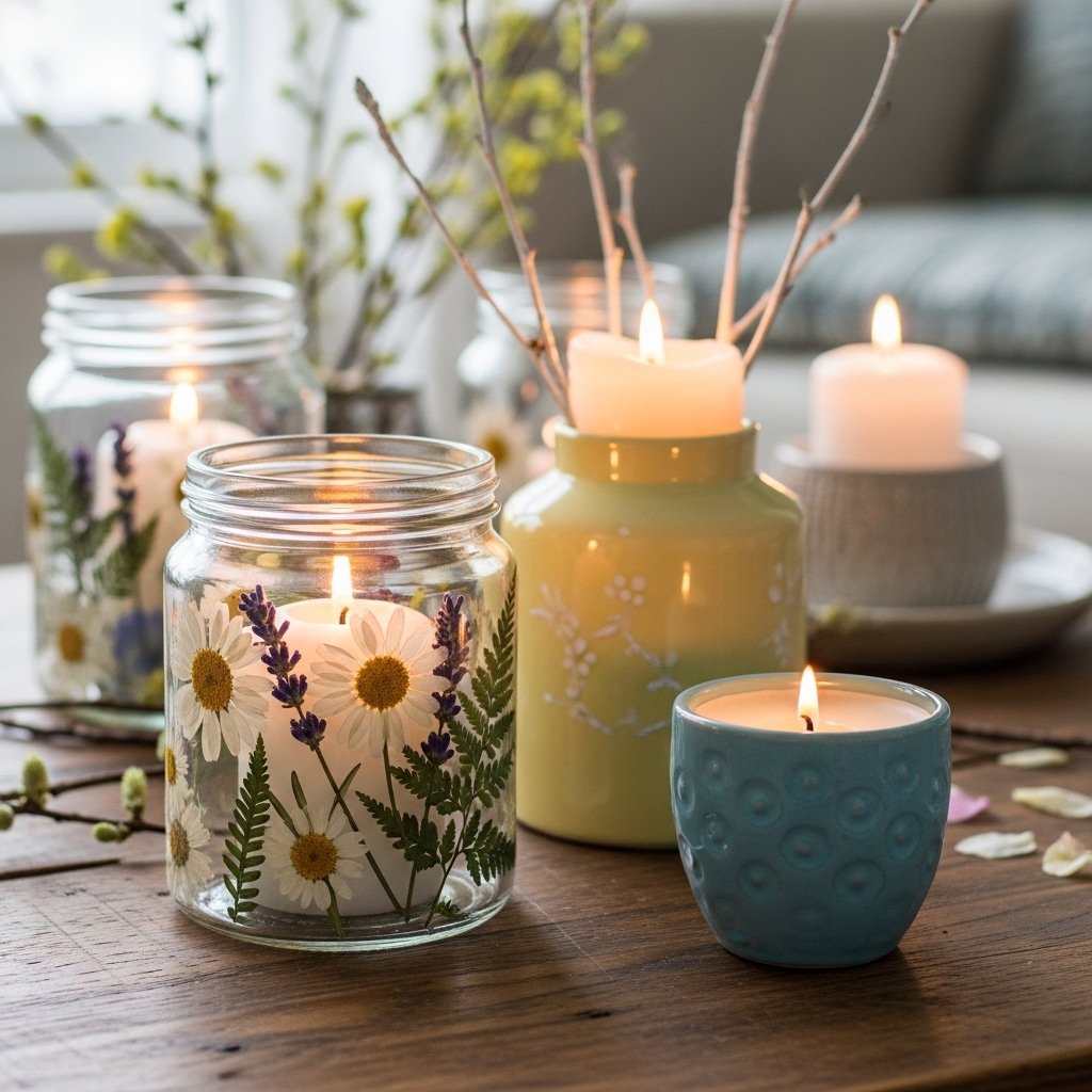 Spring-inspired candle holders can be made using glass jars, lace, or painted vases. Decorating them with pressed flowers or pastel paint instantly adds seasonal charm. Placing soft-scented candles like lavender or citrus enhances the spring ambiance even further. Arranging them in groups creates a cozy yet refreshing focal point. These candle holders work beautifully on coffee tables, shelves, or bedside tables.