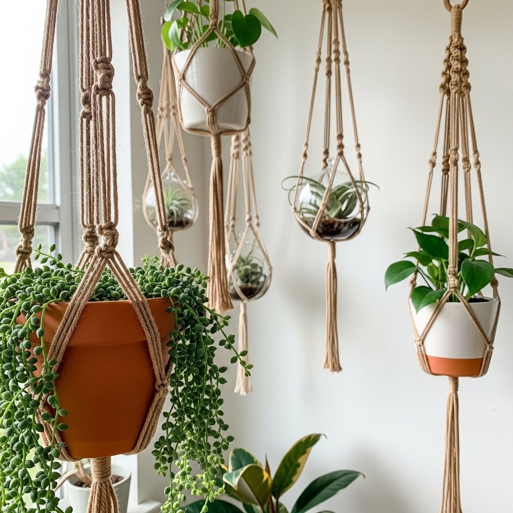 Hanging planters are a great way to add greenery and life to your room. You can make one using a small pot, string, and a wooden ring or hanger. Choose low-maintenance plants like succulents or pothos that require less care. Hanging plants create a fresh and aesthetic look while saving space. This DIY decor idea is perfect for small rooms, balconies, or study corners.
