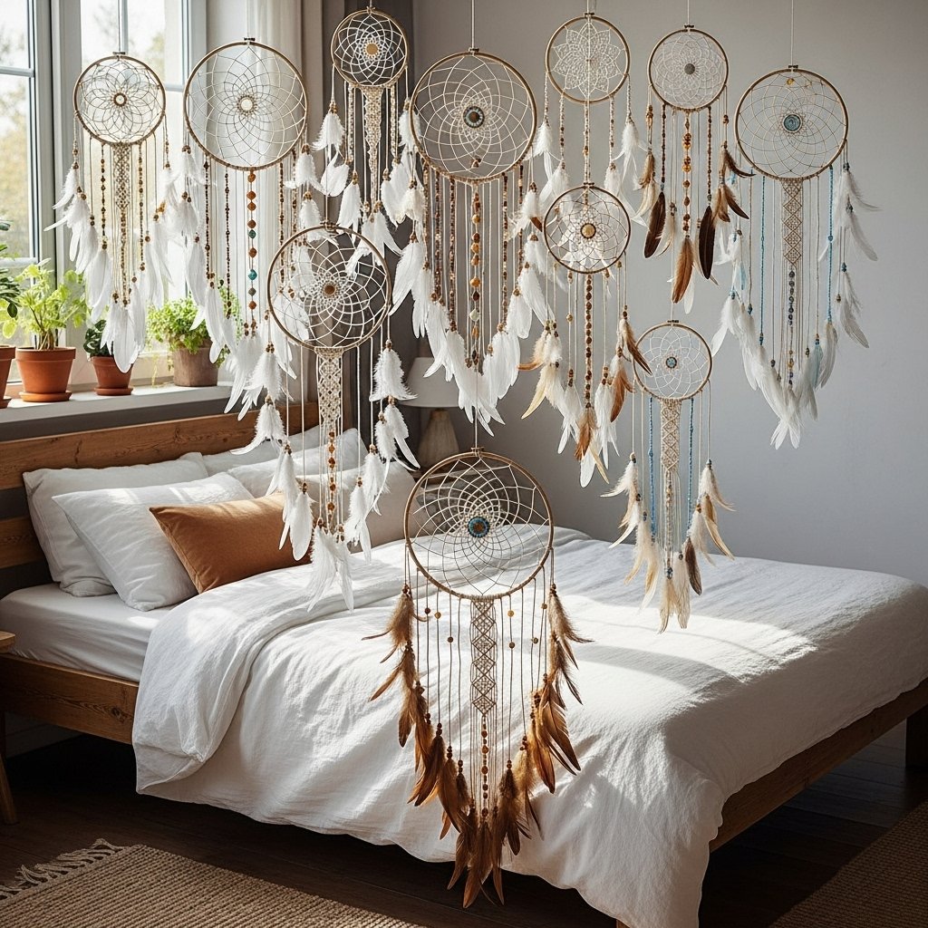 Dreamcatchers are a trendy and meaningful DIY décor piece for bedrooms. Use embroidery hoops, strings, beads, and feathers to create your custom design. Hang them above the bed, near windows, or on walls to add a whimsical and artistic touch. Making a dreamcatcher allows you to choose colors and patterns that fit your room theme. This project adds charm, creativity, and a personal touch.