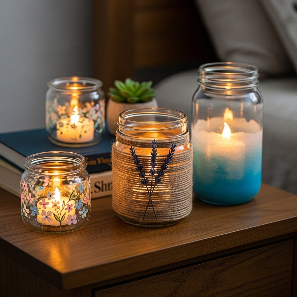 Candle holders instantly create a cozy and warm ambiance in your bedroom. Use mason jars, glass cups, or recycled bottles to make unique holders. Decorate them with paint, twine, or glitter for a personalized look. LED candles can also be used safely for a romantic atmosphere. This simple DIY adds charm and can double as a creative décor accessory.