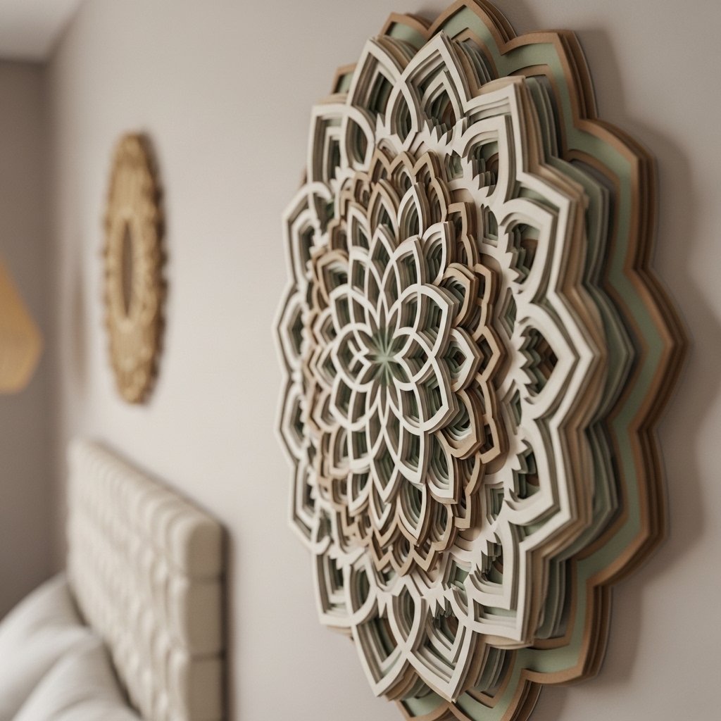 A layered paper mandala is intricate and visually captivating. Cut symmetrical shapes and layer them concentrically to create a 3D mandala effect. You can play with colors, shades, and textures to match your bedroom aesthetic. Mount the mandala on a canvas or thick cardstock for durability. This craft is perfect for creating a stunning focal point and showcases skill without needing expensive materials.