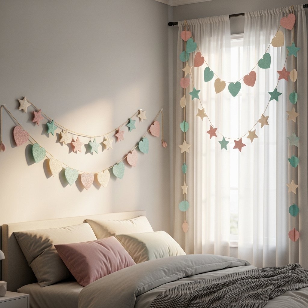 Paper garlands are playful and easy to make, instantly adding charm to any bedroom. Cut out shapes like hearts, stars, or leaves and string them together using twine or thread. Hang the garland above your bed, around windows, or along a bookshelf for a whimsical look. You can also mix colors, textures, and patterns for a unique style. Paper garlands are affordable, lightweight, and easy to update whenever you want a new vibe.