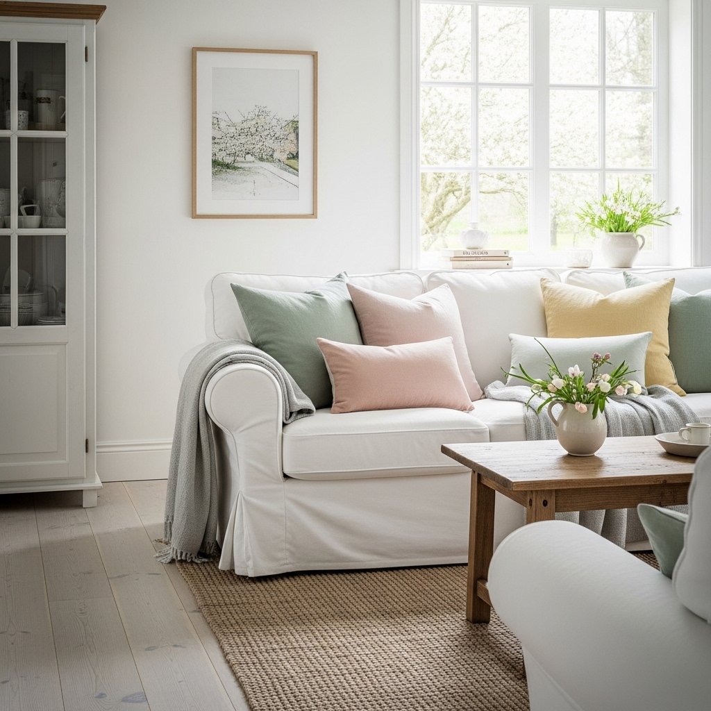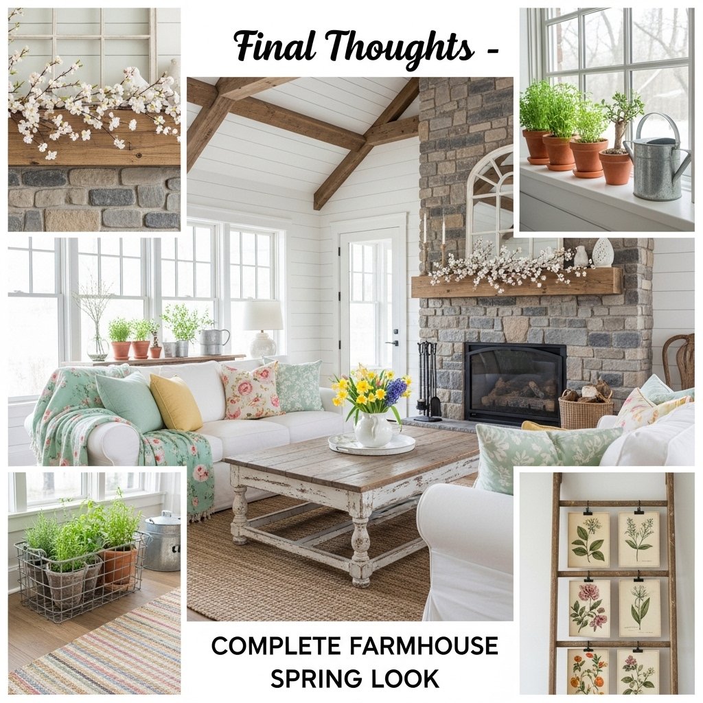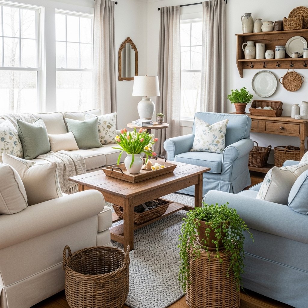 Soft and natural colors work best for farmhouse spring decor. Shades like white, cream, light green, soft pink, and pale blue help create a calm and fresh feeling in the home. These colors reflect the beauty of spring and blend well with rustic farmhouse materials such as wood, cotton, and linen.