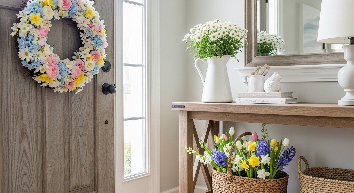 Farmhouse spring decorating ideas for the home focus on simplicity, warmth, and natural beauty. By incorporating fresh flowers, rustic textures, and light seasonal colors, you can easily transform your living space. Small updates like wreaths, textiles, and vintage accessories create a cozy farmhouse atmosphere without major renovations. These decorating ideas help celebrate the freshness and joy that spring brings to every home. With a few thoughtful touches, your farmhouse décor can feel bright, welcoming, and perfectly suited for the season.