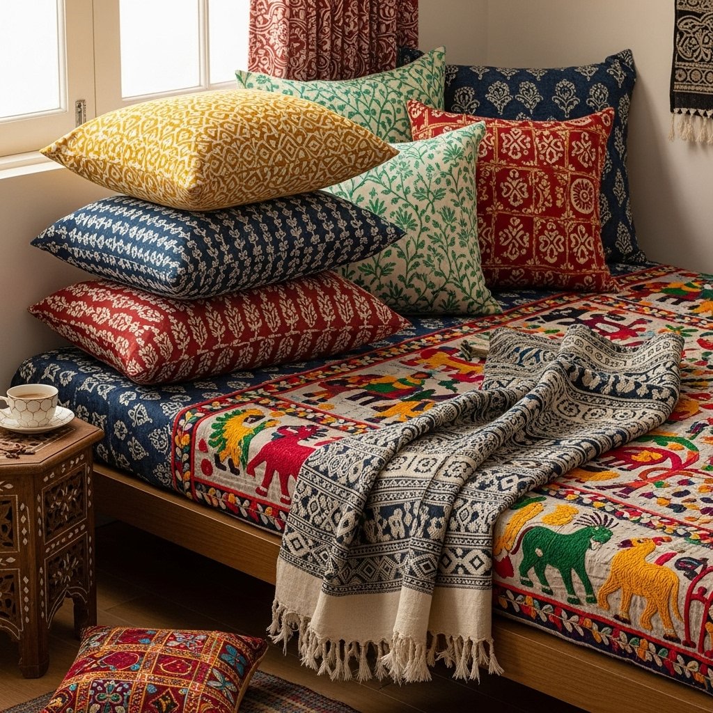 • Colorful cushion covers or throws