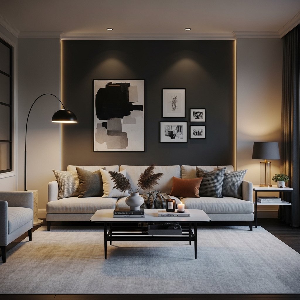 If you want to add drama and depth, consider incorporating a dark gray accent wall. Charcoal or slate tones create a bold focal point without being too overpowering. This works especially well behind a bed, sofa, or dining area. Pairing it with lighter shades of gray or white balances the overall look. This contrast adds visual interest and a modern edge to the interior.