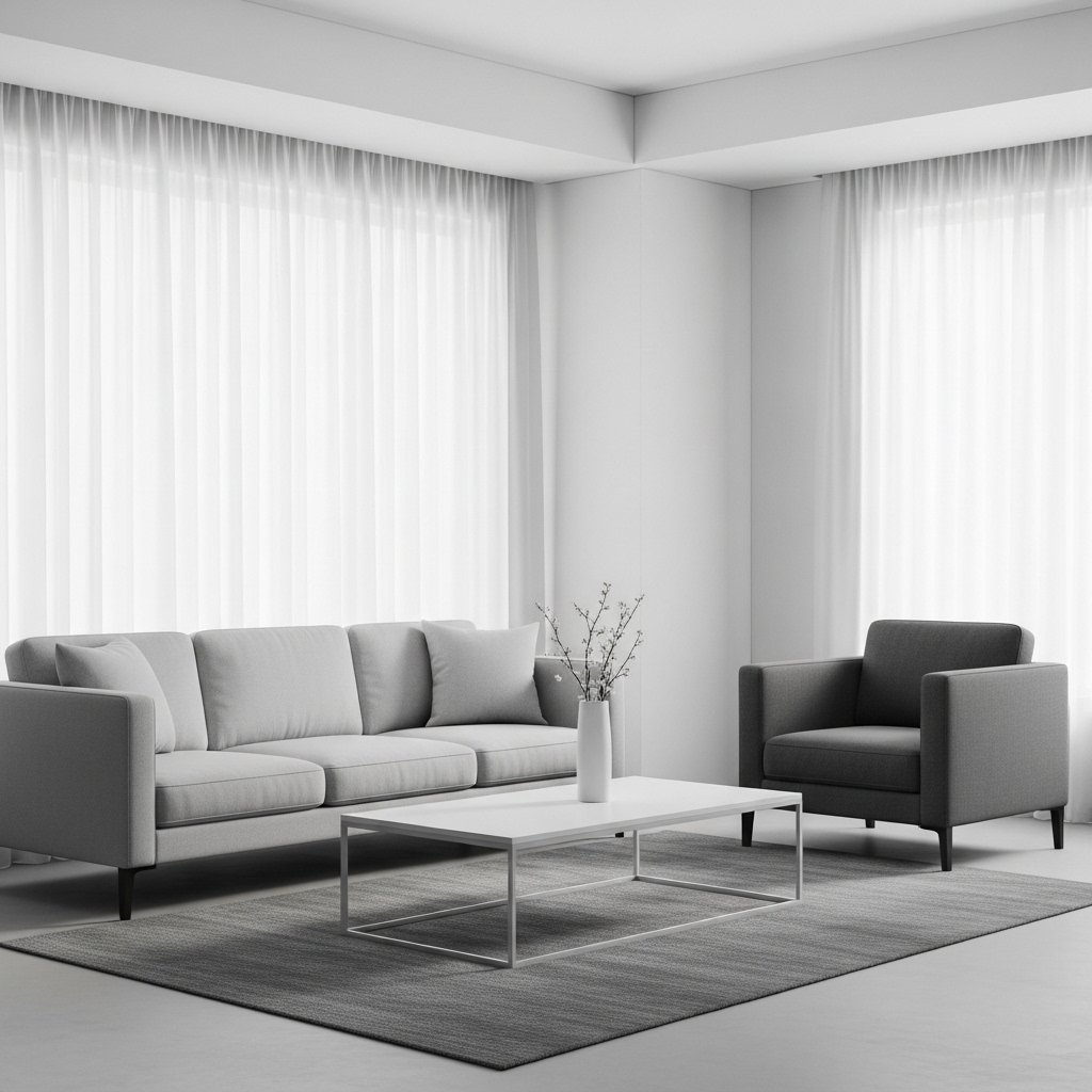 A gray house interior is a home design style that uses different shades of gray as the main color theme. It can include light gray walls, dark gray furniture, and soft gray decor elements. This style looks modern, clean, and elegant, and it works well with many other colors and textures.