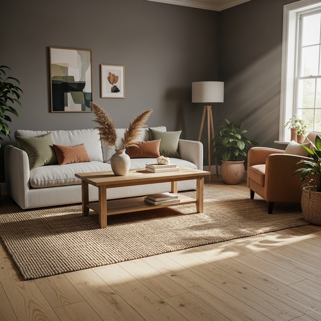 Warm gray tones paired with natural wood elements create a cozy and welcoming environment. Wooden floors, furniture, or decor pieces add warmth and contrast to the coolness of gray. This combination works well in living rooms and dining areas. It blends modern style with a touch of rustic charm. The result is a balanced and comfortable space.