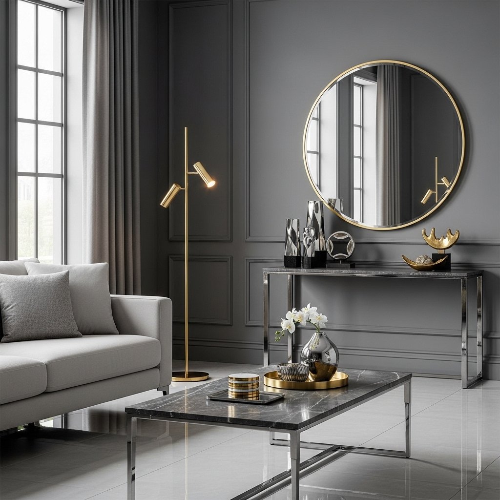 Adding metallic elements like silver, chrome, or gold can elevate a gray interior. These accents bring a touch of luxury and brightness to the space. Use metallic finishes in lighting fixtures, mirrors, or decorative items. The reflective surfaces contrast beautifully with matte gray tones. This combination creates a modern and polished look.