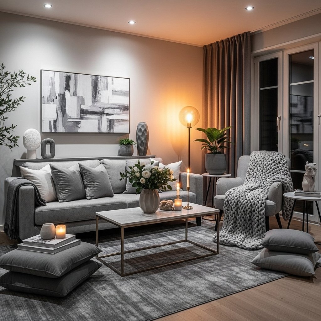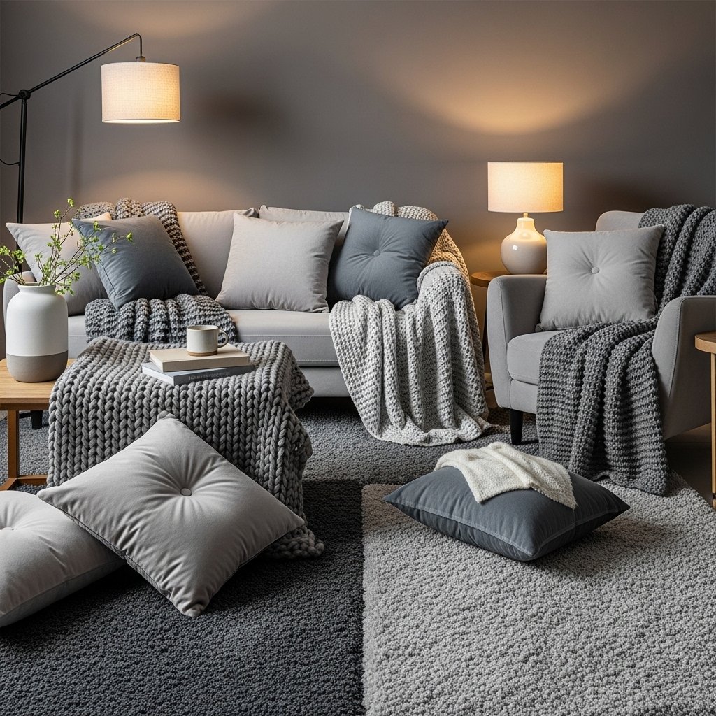 Incorporating soft textures is essential to prevent gray interiors from feeling cold or dull. Use plush rugs, velvet cushions, or knitted throws in various shades of gray. These elements add warmth and comfort while enhancing visual appeal. Mixing textures creates a cozy yet elegant environment. It also makes the space feel more inviting and lived-in.
