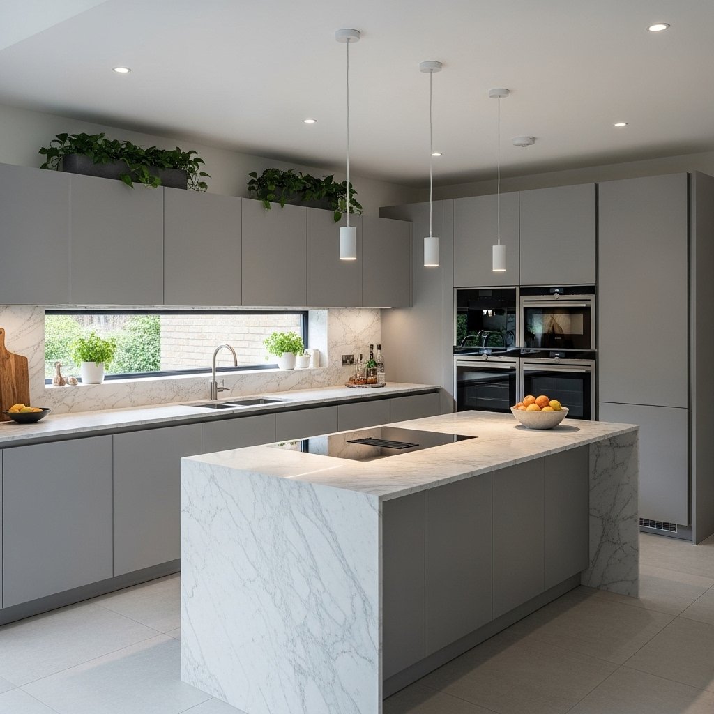 Gray kitchen cabinets are a popular choice for contemporary homes. They offer a sleek alternative to traditional white or wood finishes. Light gray cabinets create a fresh and airy look, while darker tones add sophistication. Pair them with marble or quartz countertops for a high-end feel. This design is both functional and visually appealing.