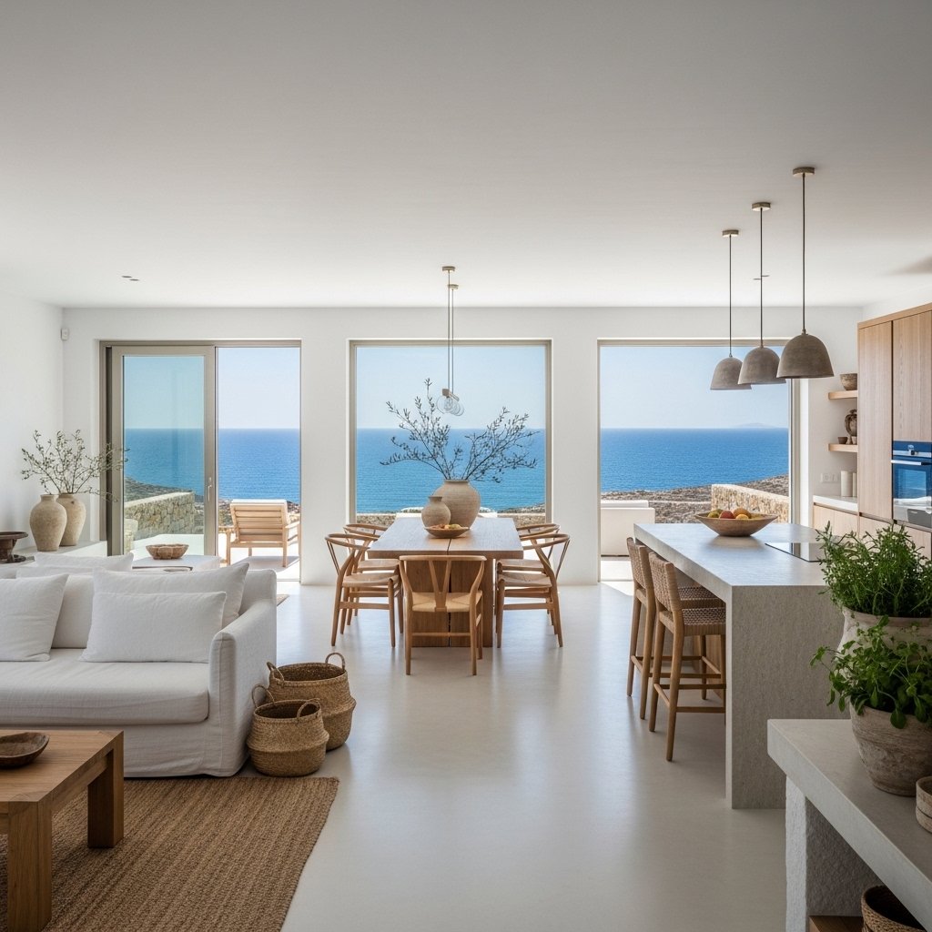 Simplicity is key in Greek home interiors, especially when it comes to furniture. Choose pieces that are functional, clean-lined, and not overly decorative. Low-profile sofas, wooden tables, and simple chairs create a relaxed and uncluttered environment. Each piece should serve a purpose while contributing to the overall harmony of the space. This minimalist approach ensures that the home feels open, breathable, and easy to navigate.