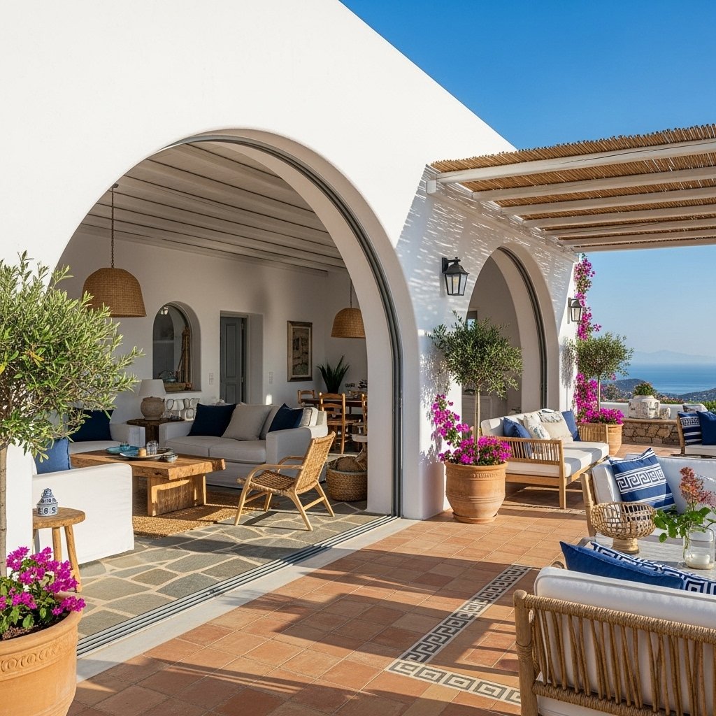 Greek homes seamlessly blend indoor and outdoor living, making nature an extension of the interior. Large windows, sliding doors, or open patios help connect the two spaces. Outdoor areas often feature similar design elements, such as white walls and natural materials. Adding plants or small indoor gardens can enhance this connection even further. This approach promotes a relaxed lifestyle and brings fresh energy into the home.