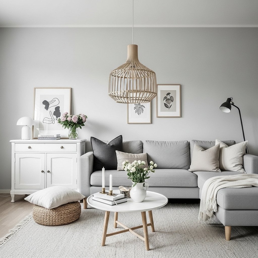 Scandinavian interiors focus on light colors like white, soft gray, and pale wood tones. This palette creates a clean, cozy, and functional living space. It works especially well in smaller homes by making them feel more open. Minimal décor and natural light are key elements of this style. This idea is perfect for those who love simplicity and comfort.