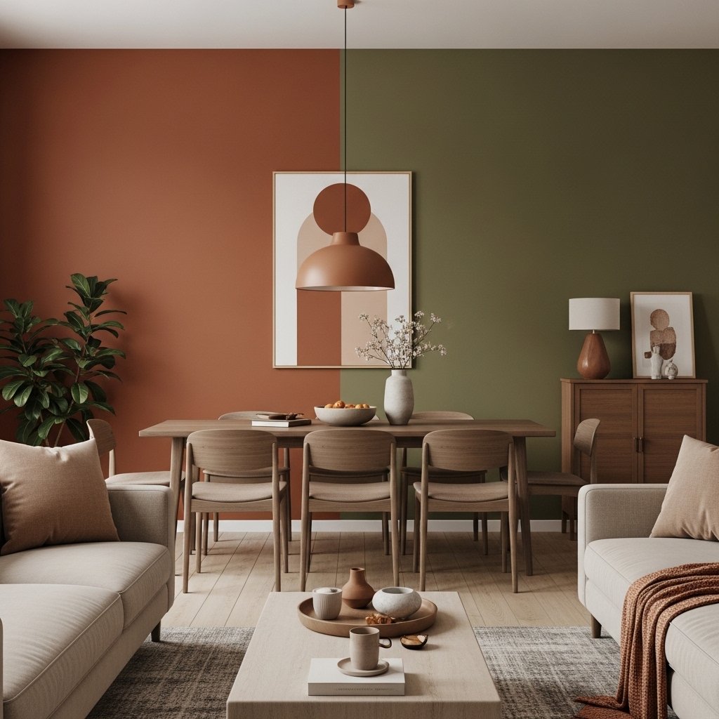 Earth tones like terracotta, brown, and olive green create a warm and welcoming environment. These colors bring a natural and grounded feel to your home. They are perfect for living rooms or dining areas where comfort is a priority. Pairing them with neutral furniture enhances the overall aesthetic. This color scheme is great for those who love a cozy and organic interior style.