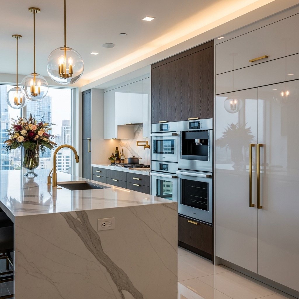 A luxury kitchen design focuses on premium materials and high-end finishes. This includes marble countertops, custom cabinetry, and advanced appliances. The design emphasizes elegance, comfort, and sophistication. Luxury kitchens often include spacious layouts and stylish lighting fixtures. This type of house interior kitchen creates a stunning and high-value home environment.