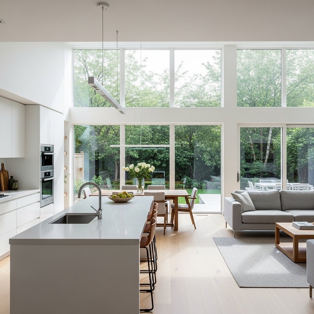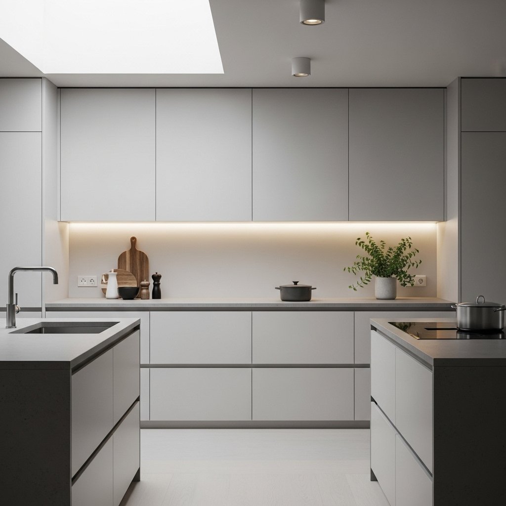 A minimalist kitchen focuses on simplicity, clean lines, and clutter-free surfaces. This house interior kitchen style uses neutral colors like white, beige, or grey to create a calm and modern look. Storage solutions are hidden or built-in to maintain a clean appearance. Minimalist kitchens are easy to maintain and perfect for busy households. The design emphasizes functionality while still offering a stylish and elegant environment.