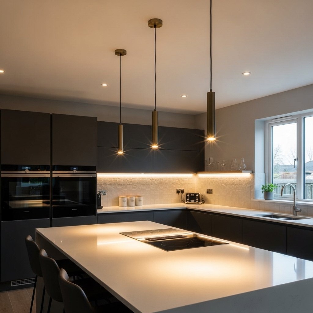 Lighting plays a crucial role in enhancing the beauty of a kitchen interior. Contemporary kitchens use a mix of task lighting, ambient lighting, and accent lighting. Pendant lights over kitchen islands add both functionality and style. Proper lighting improves visibility while cooking and creates a welcoming atmosphere. A well-lit kitchen also highlights design features and textures.