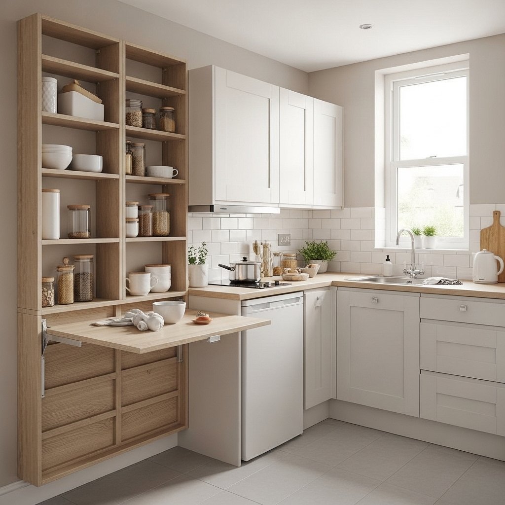 - Organize Storage – Arrange utensils, spices, and groceries in proper cabinets to keep the kitchen clutter-free.